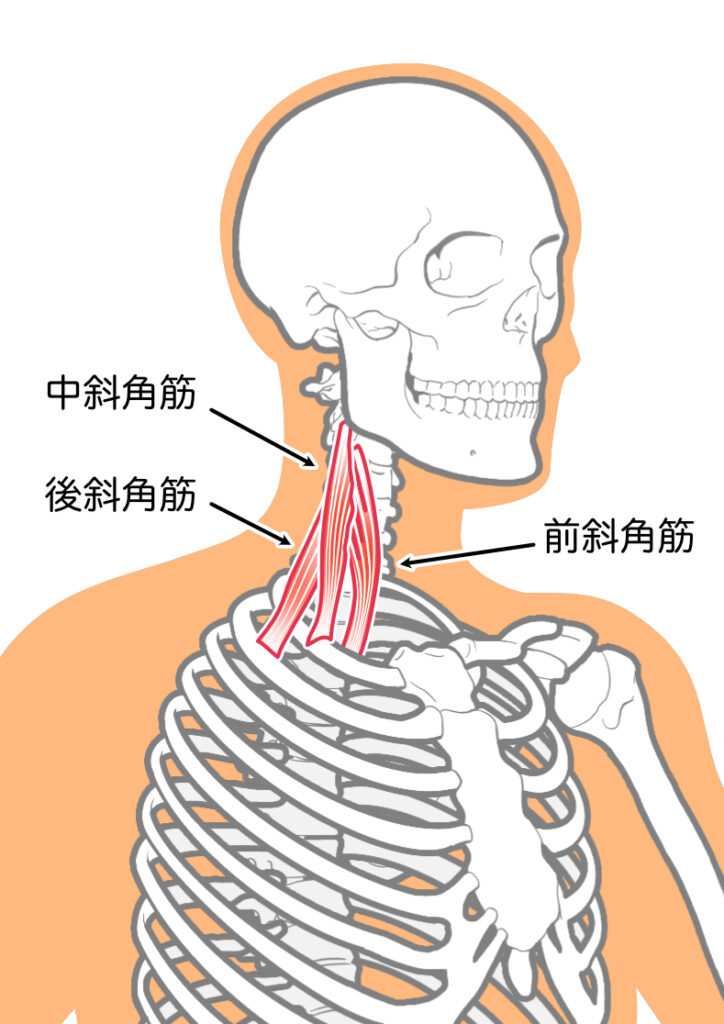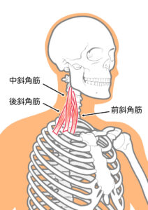 肋骨が回転し傾くことで斜角筋群などの付着する筋肉も緊張します