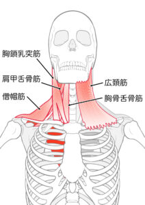 日常的に肩の位置よりも頭が前に出ていることで上位頚椎0-1番、1-2番は、過伸展している状態になり後頭下筋群は縮こまりながら頭の重さにてないといけません!